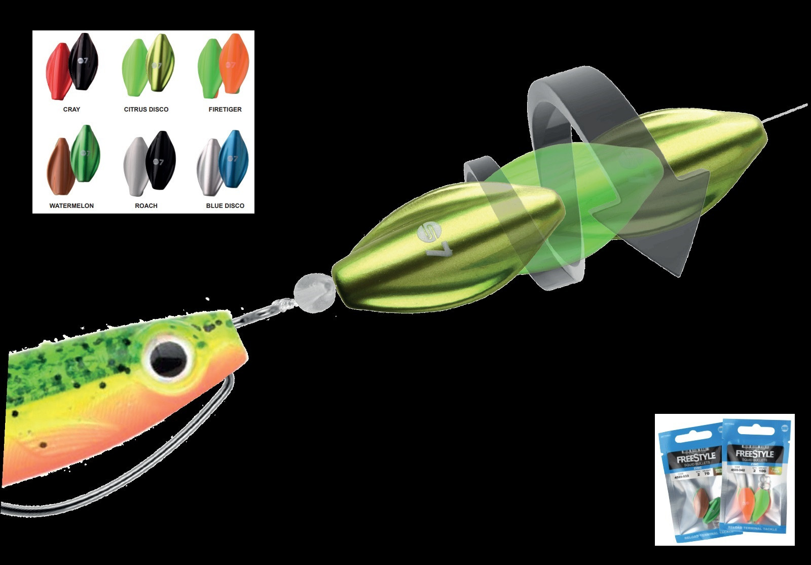 Squid Bullets sind in attraktiven Farben erhältlich, die zu fast allen Gummiköderfarben passen und für ein einheitliches und attraktives Setup sorgen.